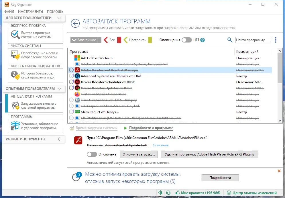 - Комплексный подход к обслуживанию системы: от чистки реестра до полного удаления программ.