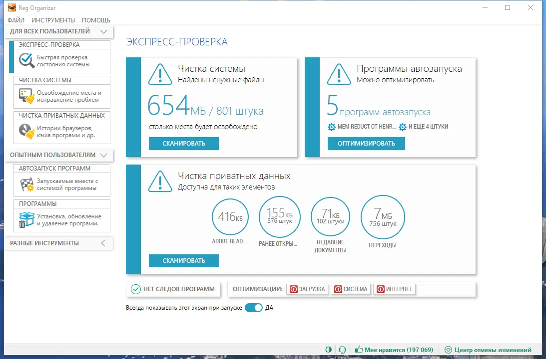- Позволяет управлять программами автозагрузки для повышения производительности.
