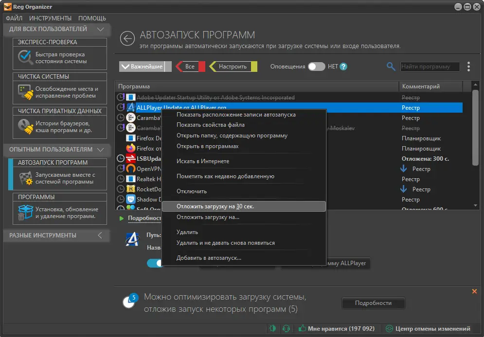 - Расширенный менеджер автозагрузки, позволяющий отключать ненужные процессы, запускаемые при старте Windows, что положительно сказывается на скорости загрузки системы.