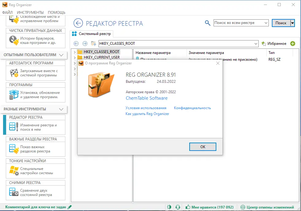 Reg Organizer — это мощный инструмент для обслуживания и оптимизации системного реестра Windows. Программа помогает удалять ненужные записи, очищать автозагрузку, редактировать ключи реестра и полностью удалять приложения с их следами. Подходит как для новичков, так и для продвинутых пользователей, стремящихся поддерживать систему в чистоте и порядке.