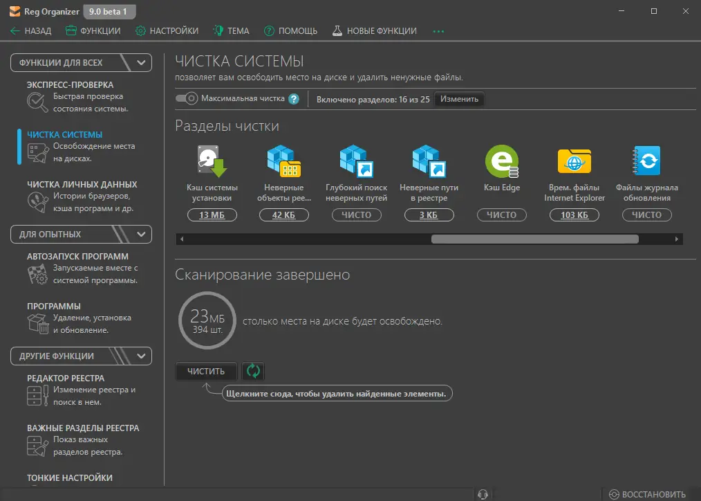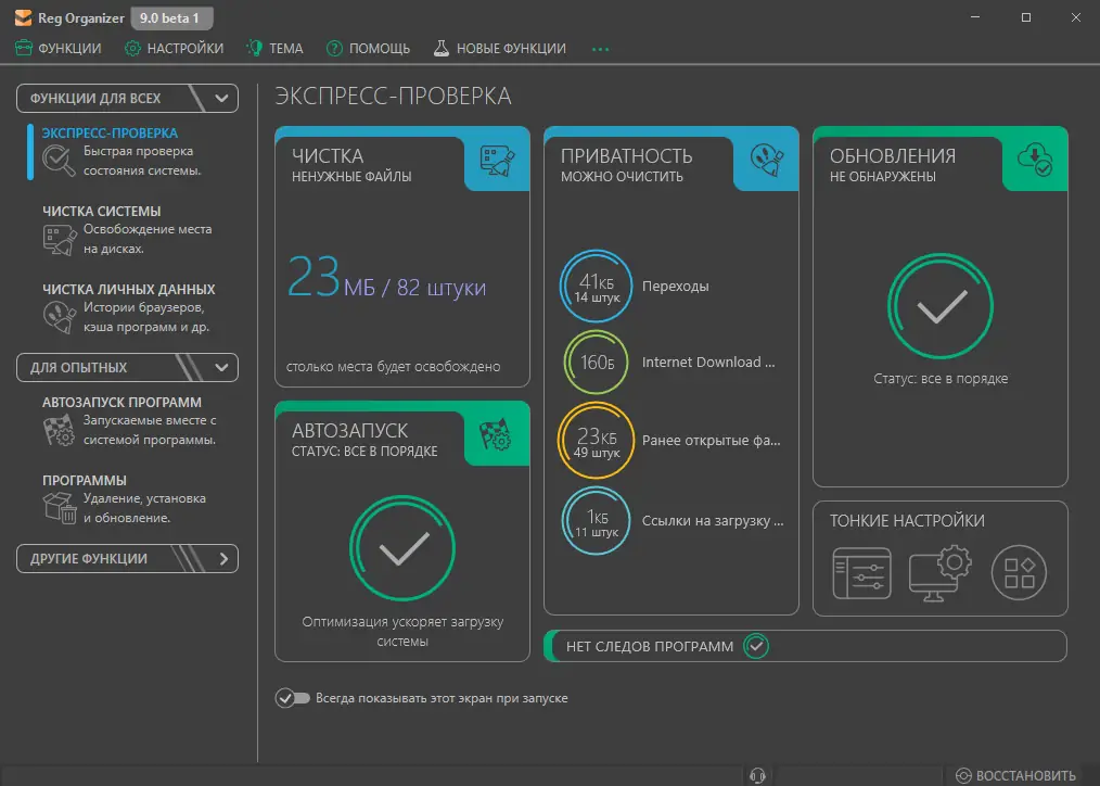 - Комплексный подход к обслуживанию системы — от чистки реестра до управления автозагрузкой.