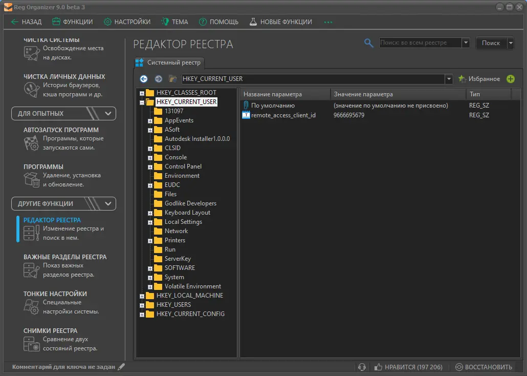 Reg Organizer — это мощный инструмент для тонкой настройки, очистки и оптимизации системного реестра Windows. Программа помогает устранять ошибки, ускорять работу операционной системы и управлять автозагрузкой, а также полностью удалять ненужные приложения вместе с их остаточными файлами и записями в реестре.