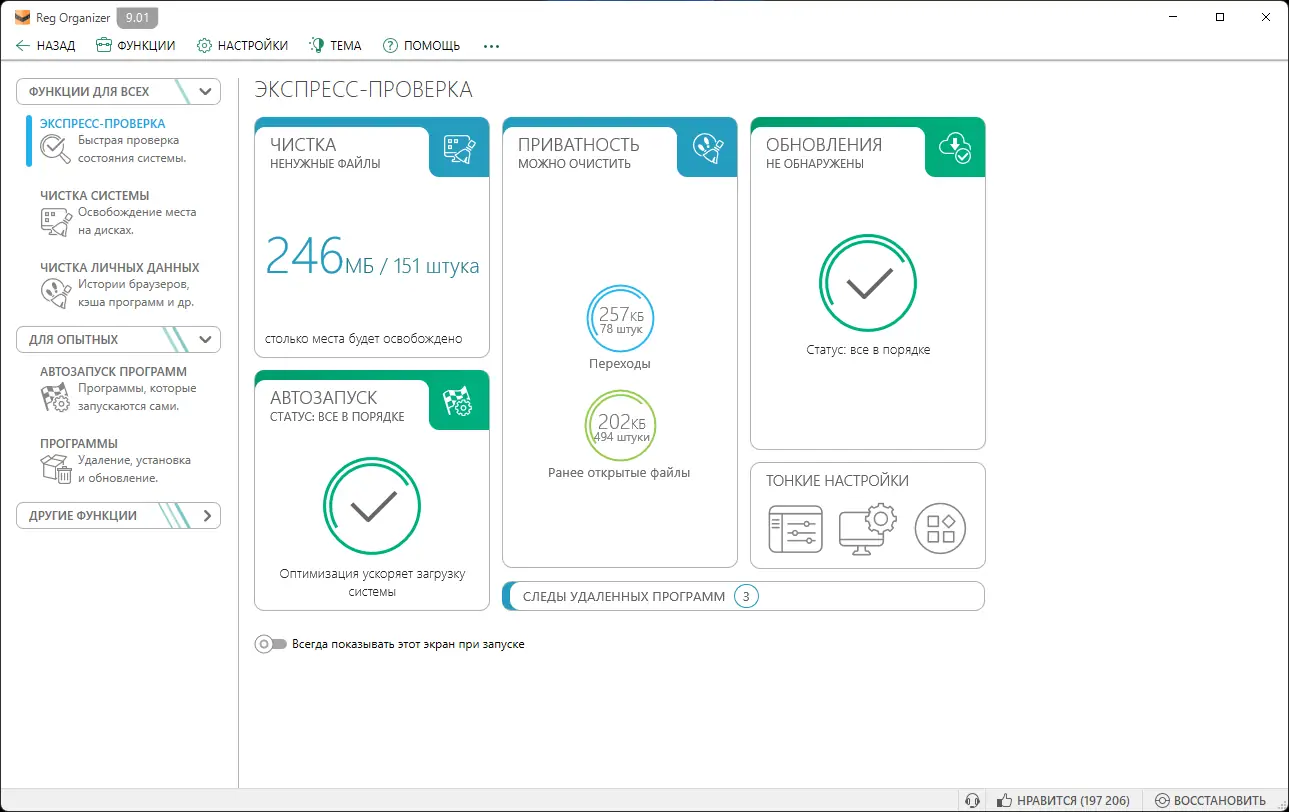 - Оптимизирует автозагрузку, освобождая оперативную память и ускоряя запуск системы.