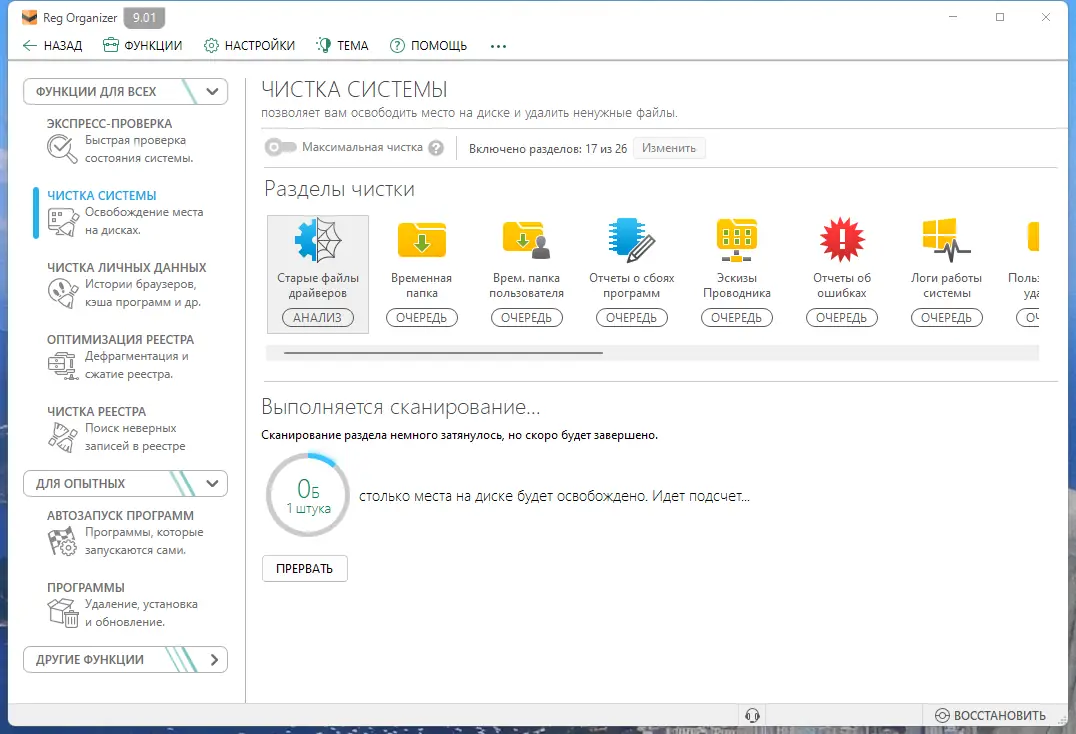 - Глубокая очистка системы от следов удалённых программ и мусорных записей