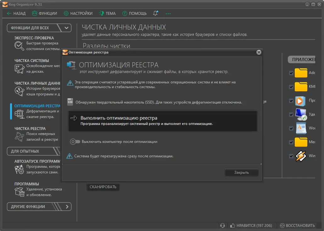 Reg Organizer — это мощный инструмент для оптимизации и обслуживания системного реестра Windows, сочетающий функции чистки, редактирования, дефрагментации и глубокого удаления программ. Программа помогает поддерживать систему в чистоте, устраняя лишние записи, ускоряя автозагрузку и освобождая дисковое пространство. Благодаря продвинутым возможностям редактирования и контролю изменений, она подходит как новичкам, так и опытным пользователям.