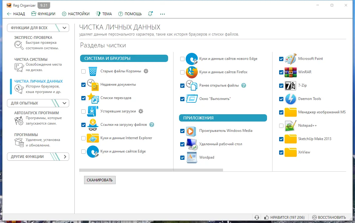 - Выполняет глубокую очистку реестра от устаревших и неверных записей, включая остатки программ, путей и ссылок.