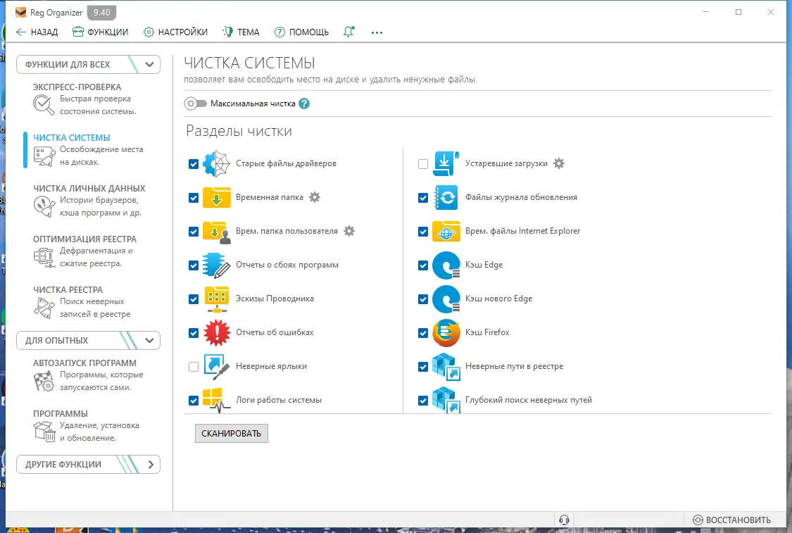 - Проводит детальную очистку и дефрагментацию системного реестра для повышения отзывчивости системы.