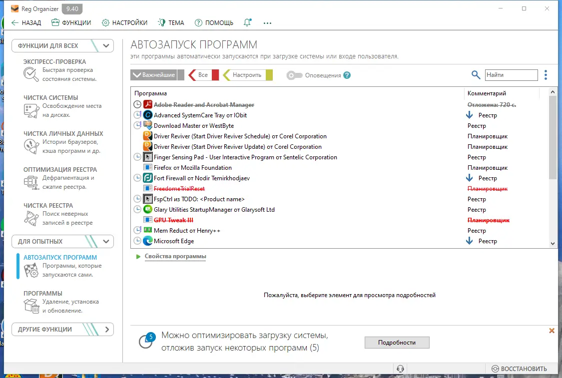 - Даёт полный контроль над автозагрузкой, позволяя отключать ненужные процессы и ускорять запуск системы.