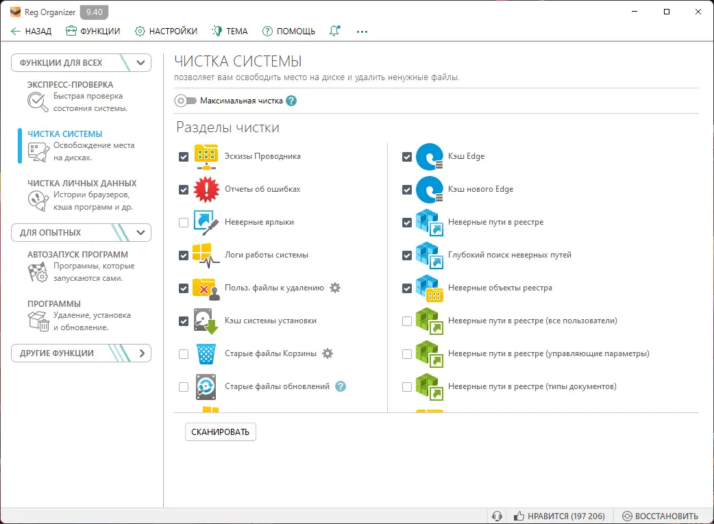- Глубокая очистка реестра и файловой системы с возможностью настройки правил.