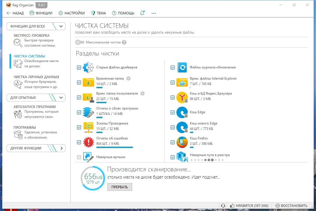 - Проводит глубокую очистку реестра от устаревших и неверных записей, включая остатки удалённых программ.