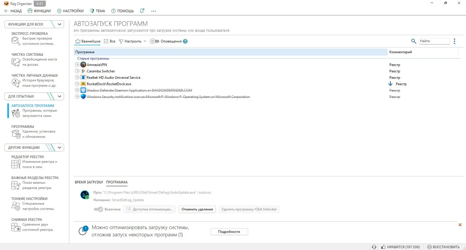 Reg Organizer — это мощный инструмент для обслуживания и оптимизации системного реестра Windows, сочетающий в себе функции твикера, редактора реестра и деинсталлятора. Программа помогает очищать реестр от ошибок, удалять остатки софта, настраивать автозагрузку и управлять системными параметрами. Её возможности позволяют поддерживать стабильность и производительность операционной системы на высоком уровне.