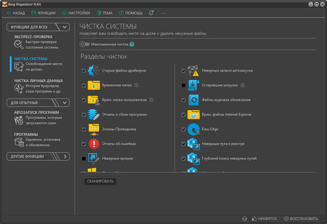 - Комплексный подход к обслуживанию системы: от чистки реестра до полного удаления программ.