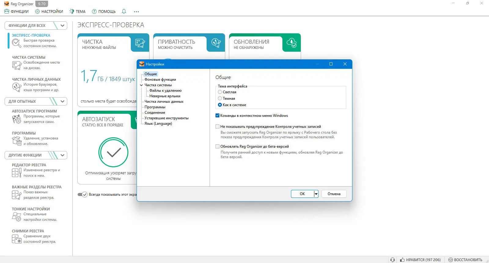 Reg Organizer демонстрирует высокую эффективность при оптимизации системы. Его функционал охватывает широкий спектр задач, связанных с обслуживанием реестра и управления установленным ПО. Программа работает стабильно, не нагружает систему и поддерживает все актуальные версии Windows. Интерфейс переведён на русский язык, что упрощает навигацию. При этом она остаётся компактной и не требует сторонних библиотек для работы.