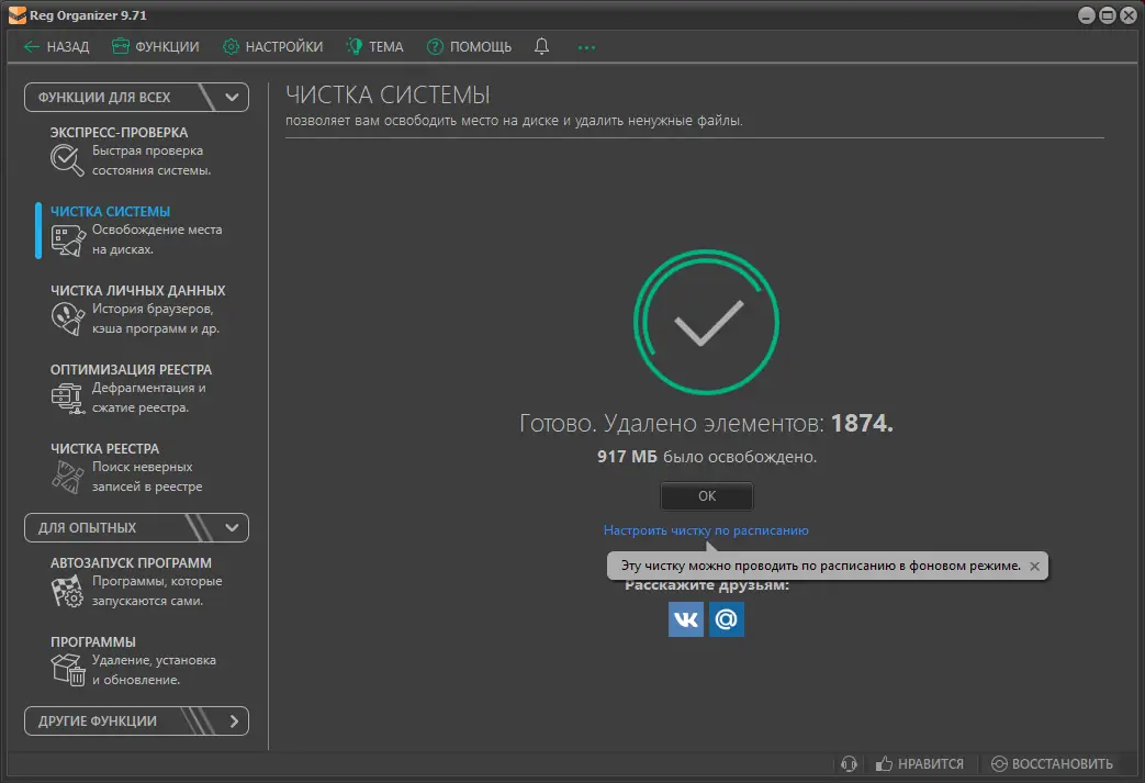 - Обеспечивает дефрагментацию и сжатие реестра для повышения скорости доступа к системным данным.