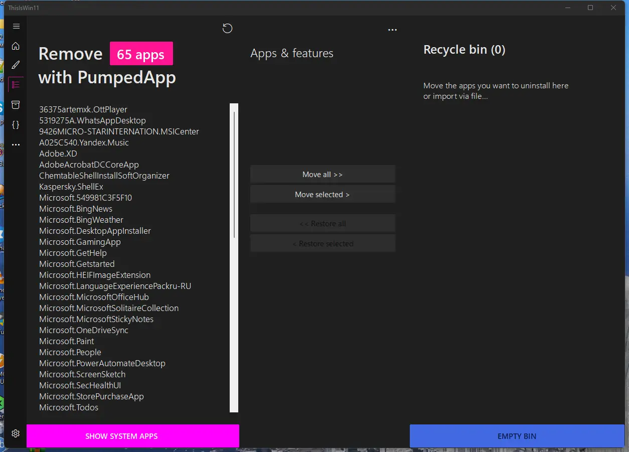 ThisIsWin11 — универсальное приложение для тонкой настройки и оптимизации Windows 11, позволяющее убрать предустановленные приложения, применить системные твики, установить нужные пакеты программ и быстро освоить новые возможности операционной системы. Инструмент объединяет в себе функционал настройки, очистки и персонализации, делая работу с Windows более комфортной и безопасной. Подходит как новичкам, так и продвинутым пользователям, стремящимся получить полный контроль над системой.