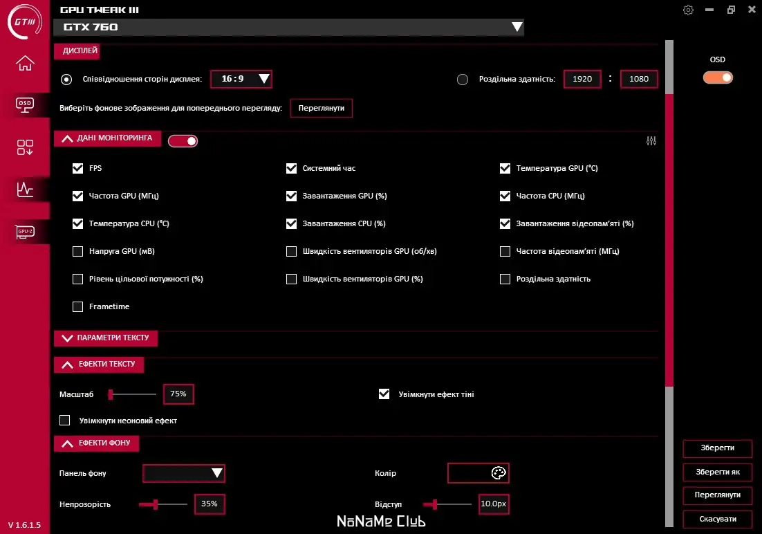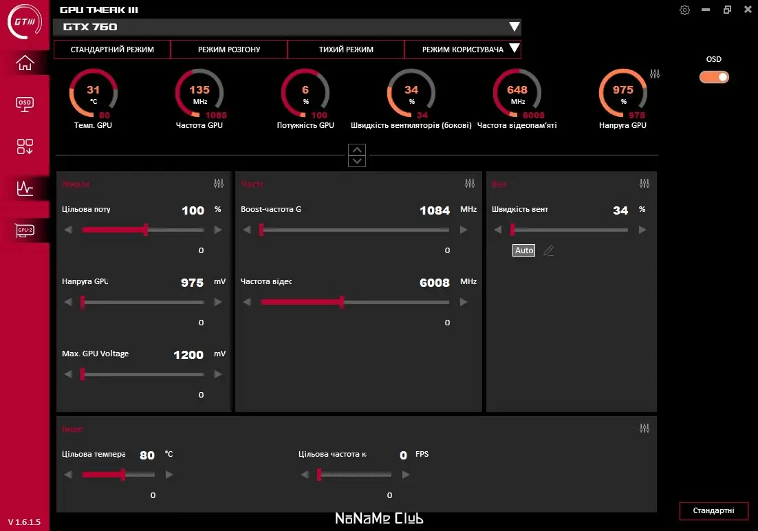 - Мониторинг температуры, загрузки GPU и частоты ядра в реальном времени.