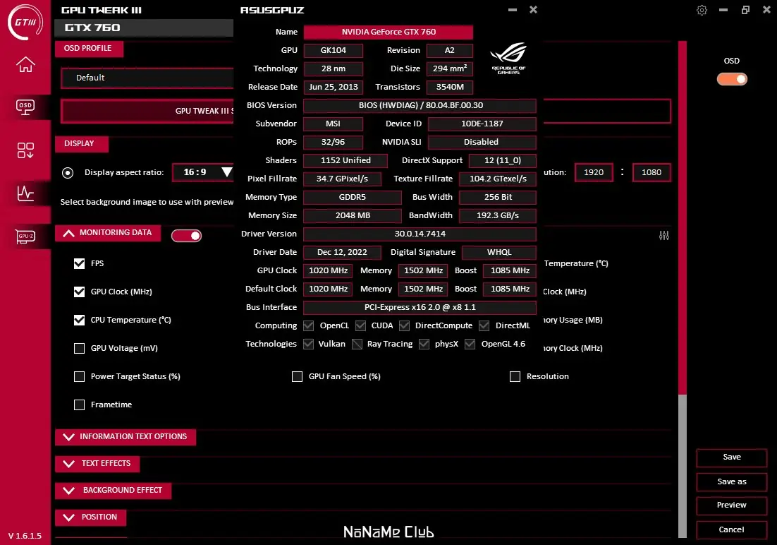 - Встроенная поддержка GPU-Z, XSplit, AUPA и FurMark.