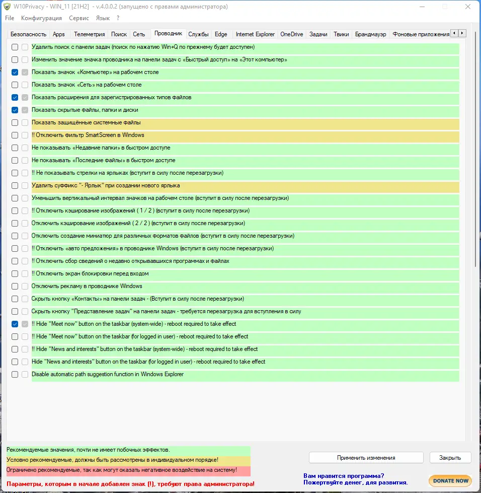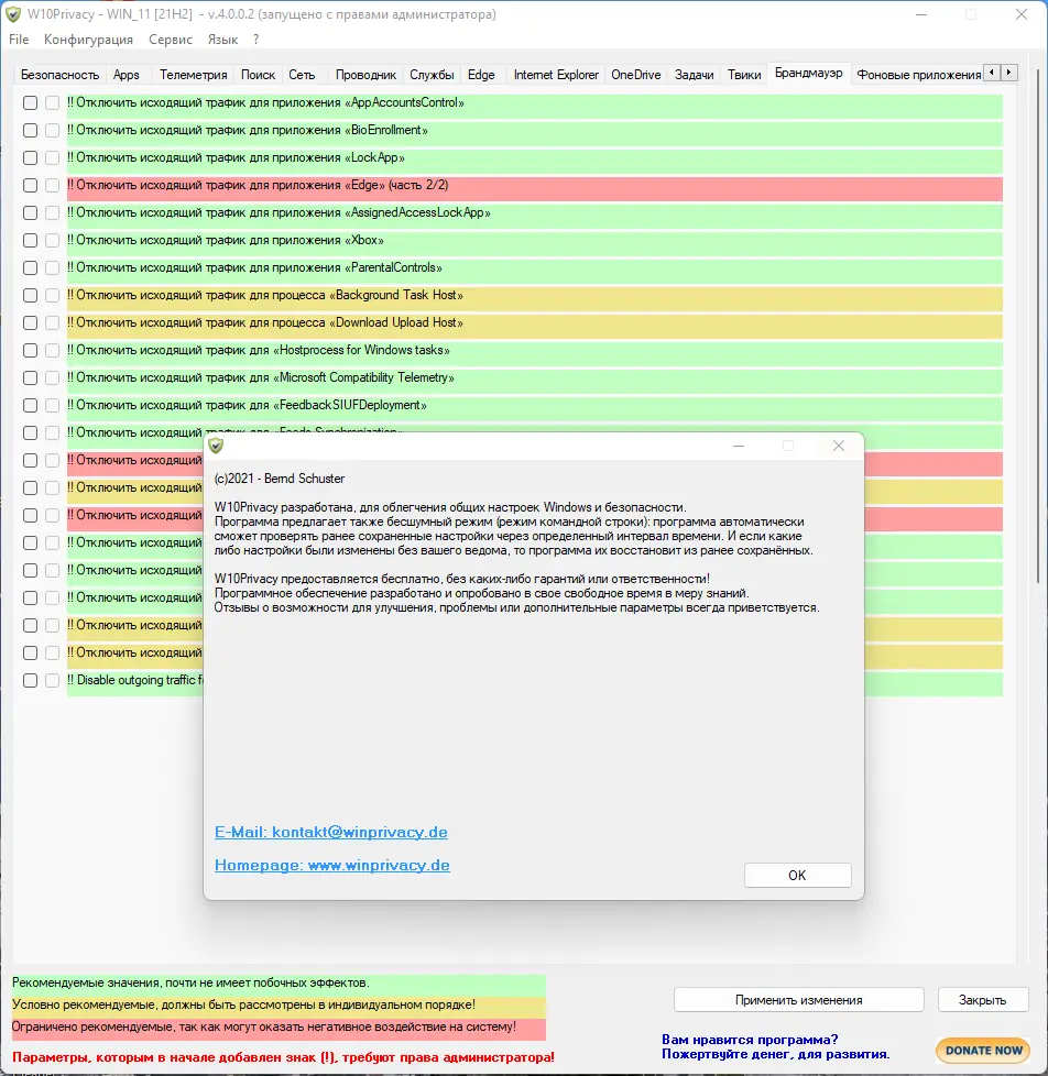Работа с W10Privacy