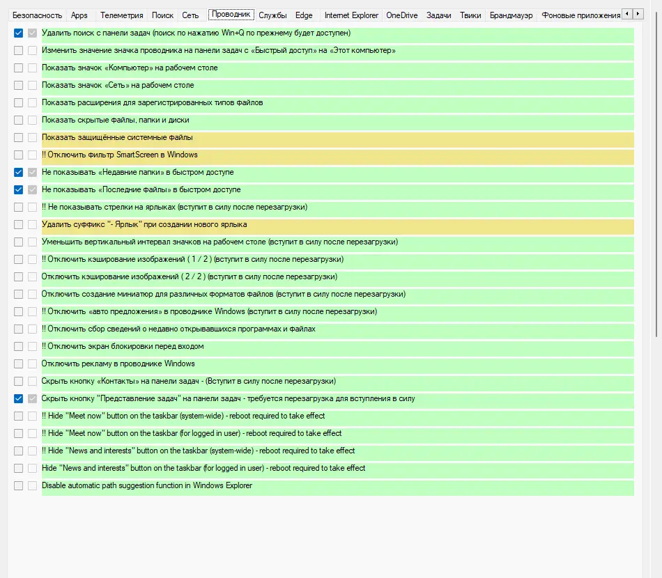 - Отсутствие автоматического создания точки восстановления перед изменениями.