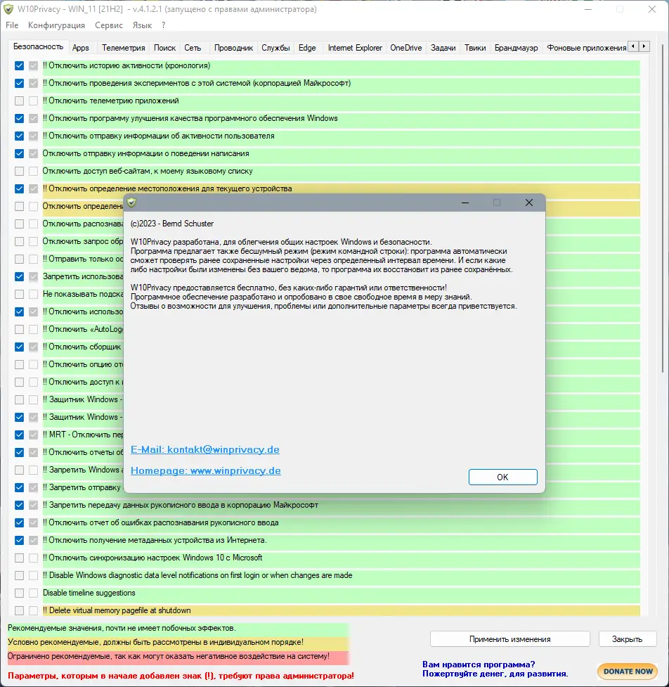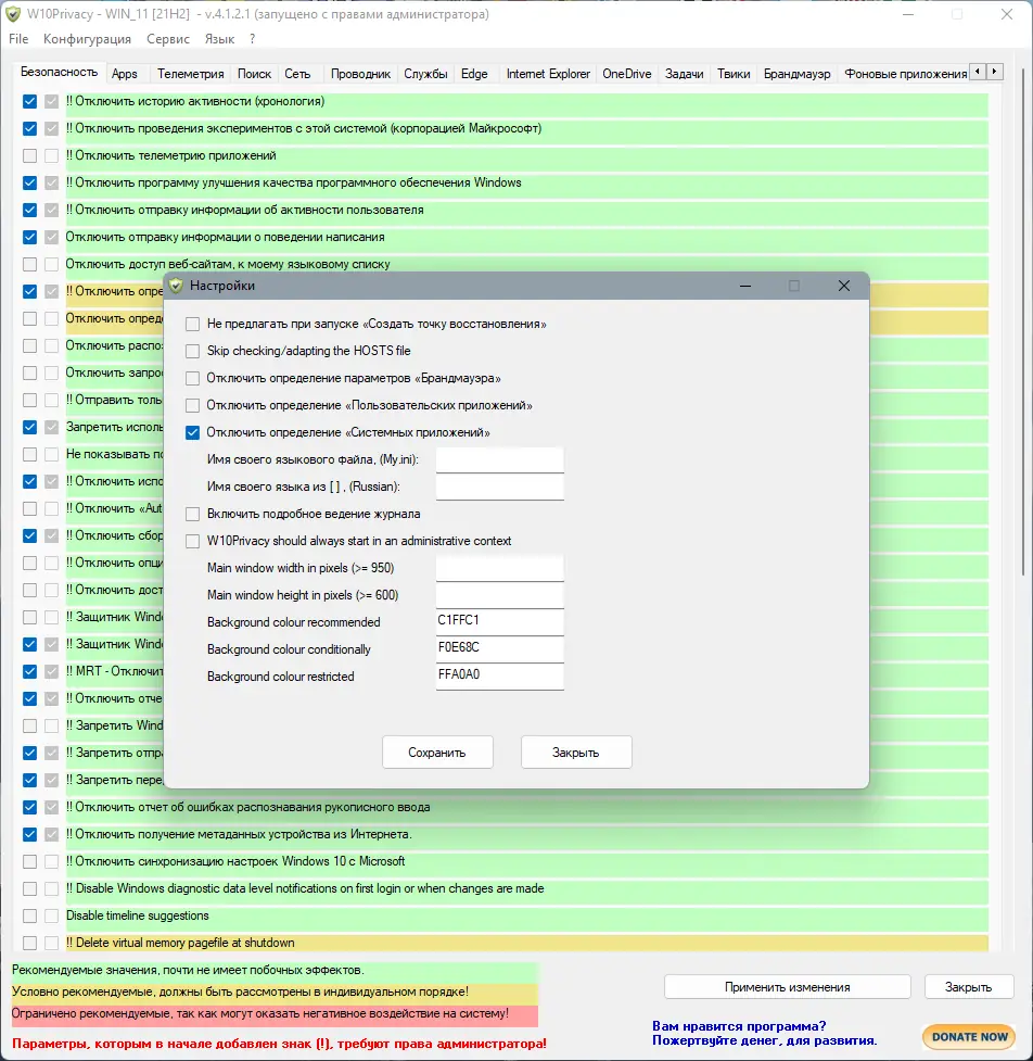 Работа с W10Privacy