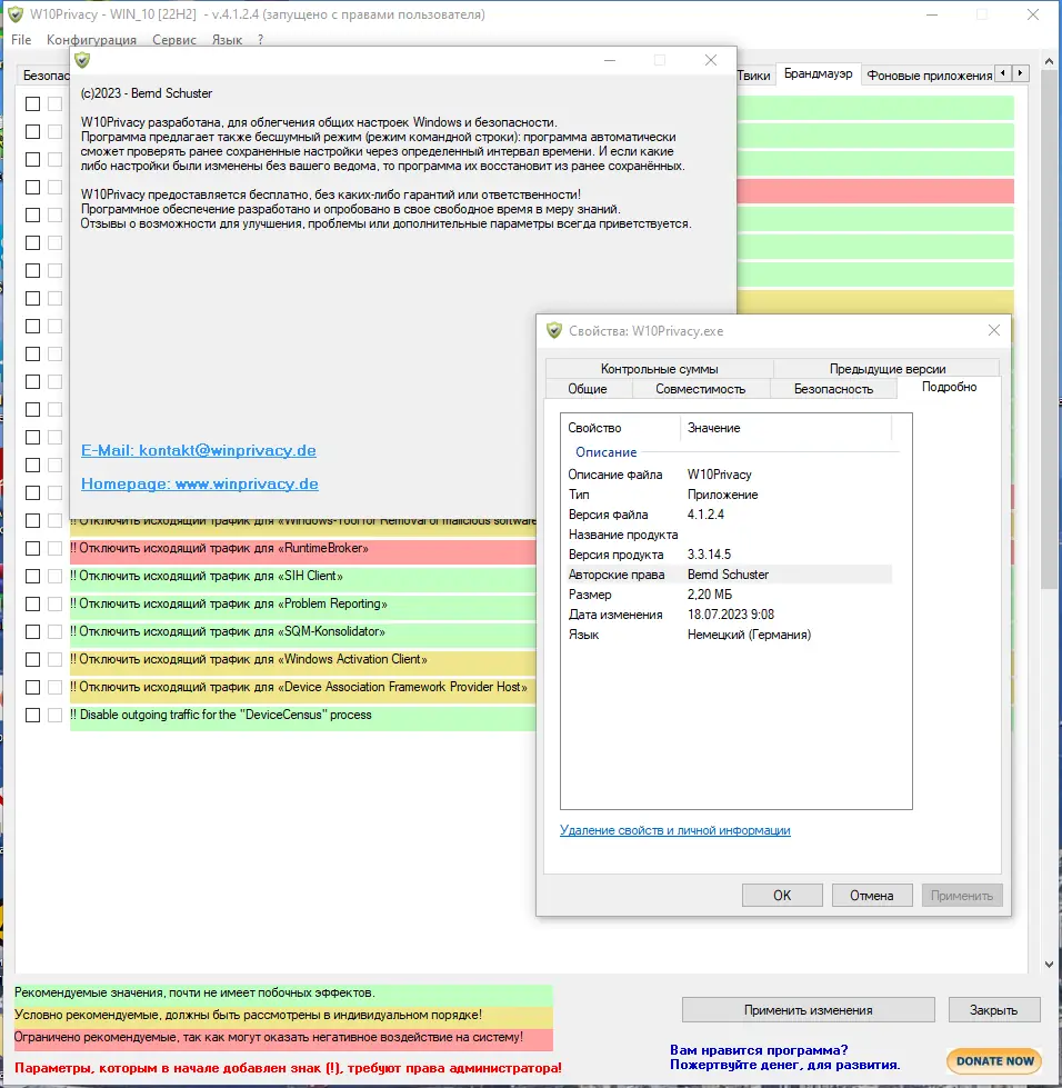 W10Privacy — это инструмент для настройки конфиденциальности в операционной системе Windows, позволяющий отключить сбор телеметрии, изменить параметры приватности и усилить защиту персональных данных. Программа ориентирована на пользователей, заботящихся о безопасности и контроле над своими настройками. Она предоставляет детализированный доступ к скрытым функциям системы без необходимости редактировать реестр вручную.