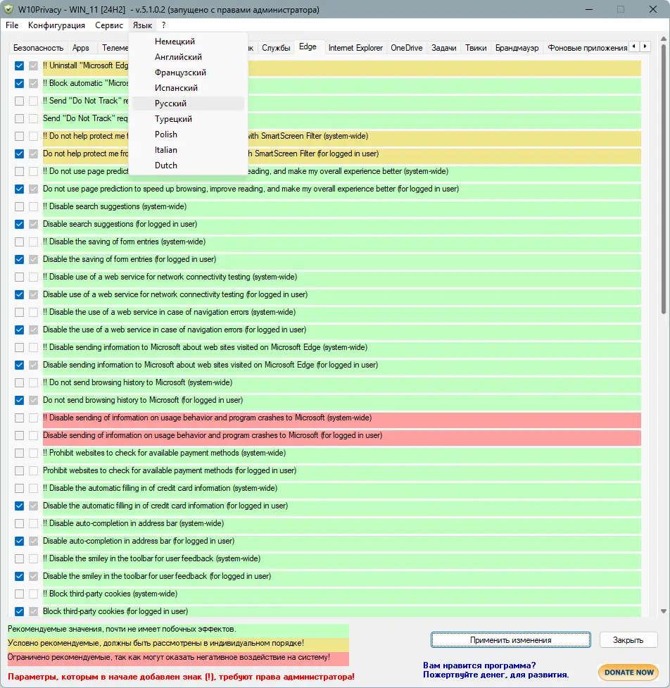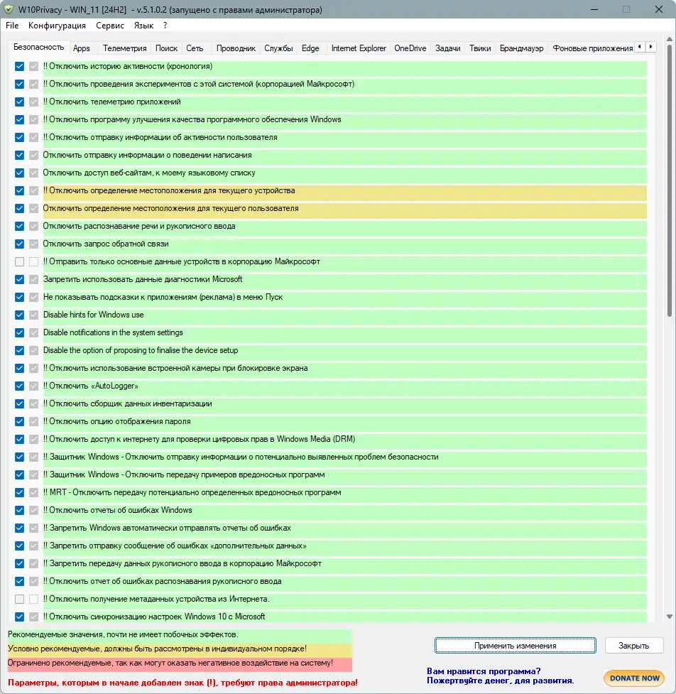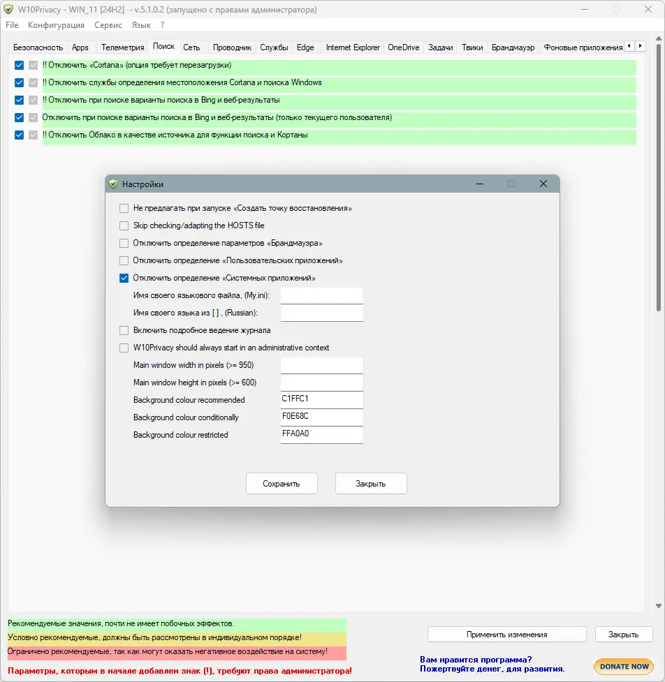 Работа с W10Privacy