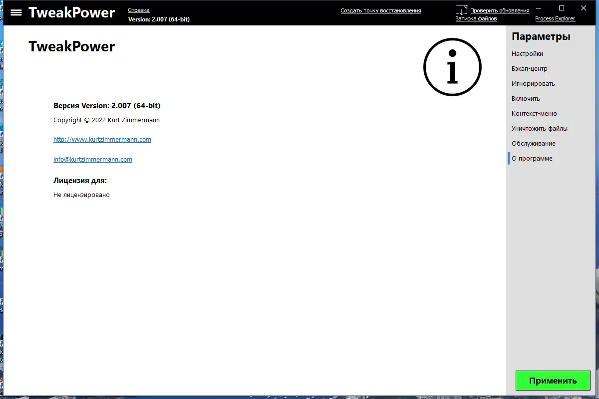 TweakPower представляет собой мощный твикер, ориентированный на пользователей, стремящихся получить полный контроль над своей системой. Программное обеспечение сочетает в себе функции оптимизации, диагностики и настройки, обеспечивая комплексный подход к обслуживанию компьютера. Благодаря интуитивному интерфейсу даже новичок может быстро разобраться в основных возможностях.