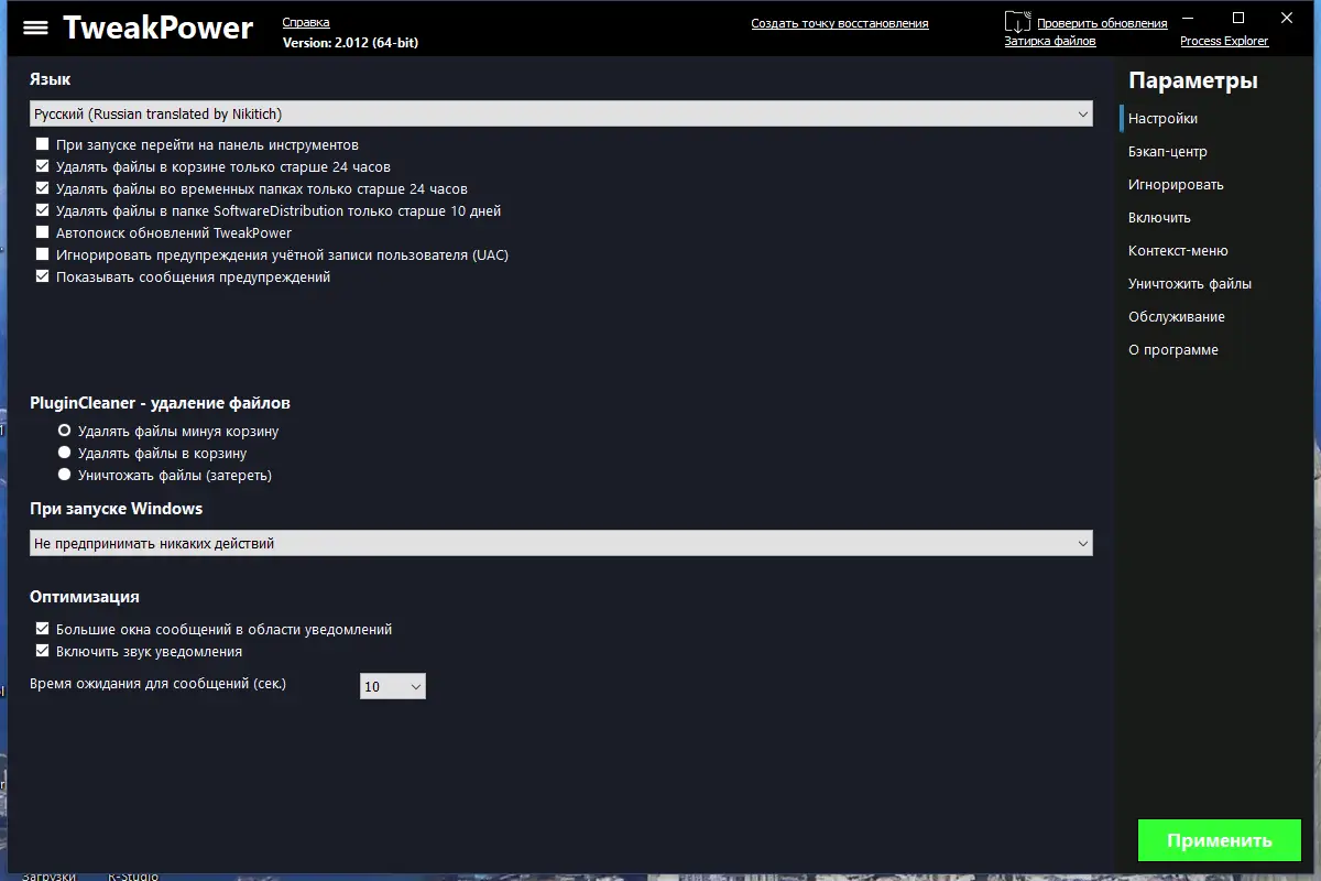 Использование TweakPower не требует специальных знаний, хотя программа предоставляет доступ к продвинутым настройкам. После запуска пользователь видит панель с категориями функций: очистка, настройка, безопасность, резервное копирование и другие. Каждый раздел содержит набор опций, сгруппированных по назначению. Например, в разделе очистки можно выбрать типы данных для удаления, а в настройках безопасности — активировать защиту от несанкционированного доступа. Перед внесением изменений программа предлагает создать точку восстановления, что минимизирует риски. Также доступен встроенный менеджер задач и сплиттер файлов, позволяющий разделять большие данные на части. Дефрагментатор помогает упорядочить данные на жёстком диске для ускорения доступа.