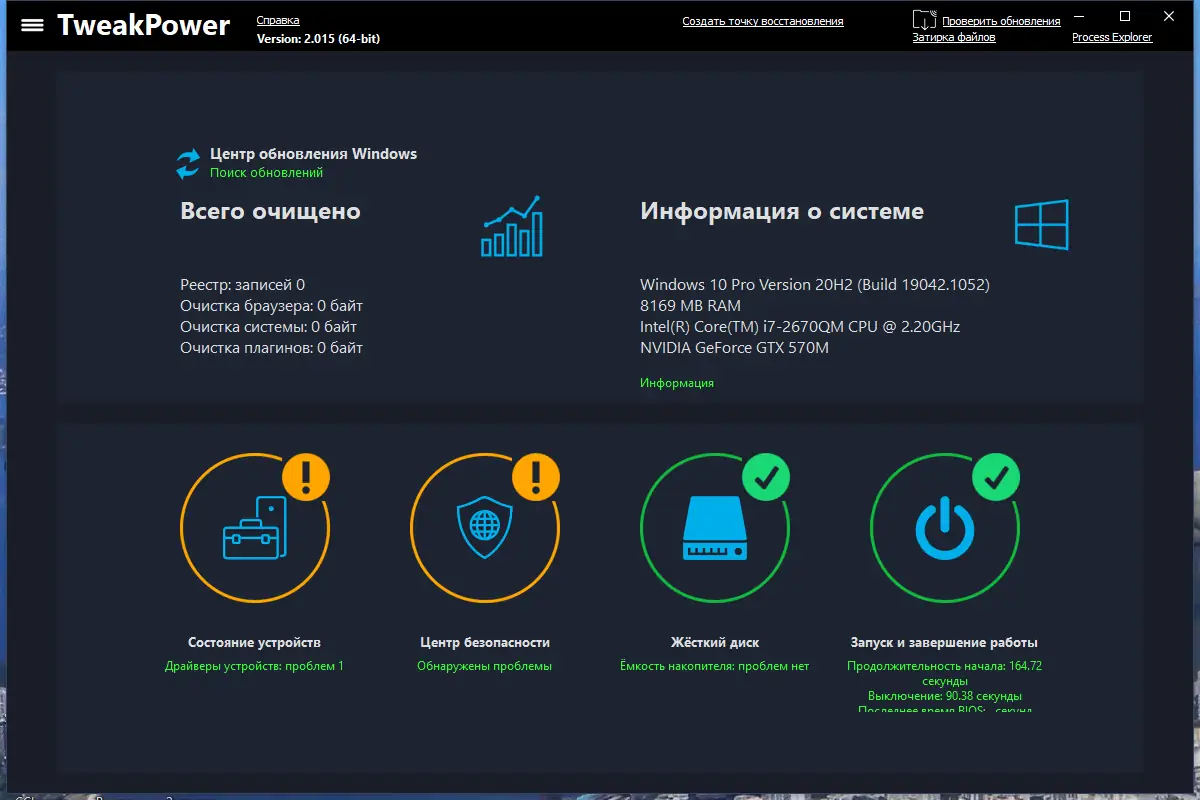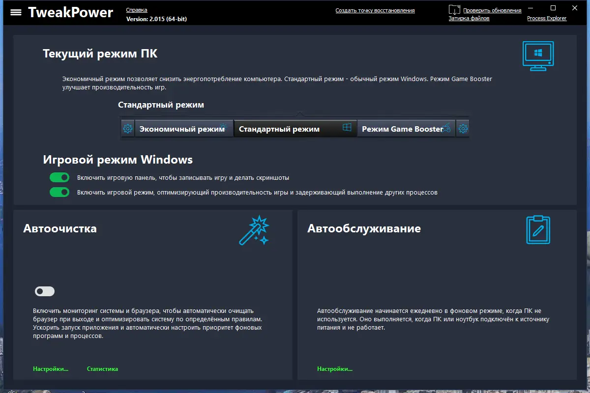 TweakPower — это комплексный инструмент для тонкой настройки, очистки и оптимизации операционной системы Windows, объединяющий множество функций в едином удобном интерфейсе. Программа помогает ускорить работу компьютера, устранить системные ошибки, освободить место на диске и повысить уровень безопасности за счёт гибкой настройки параметров системы.