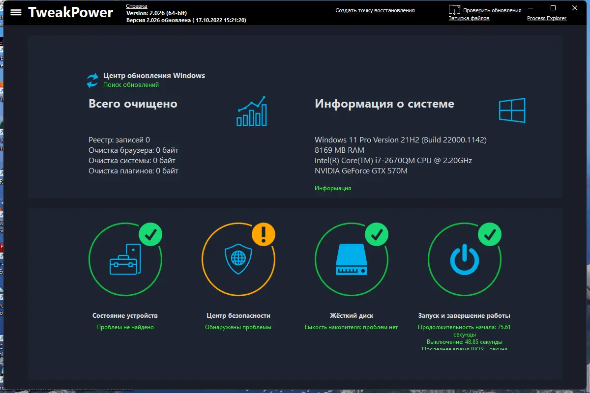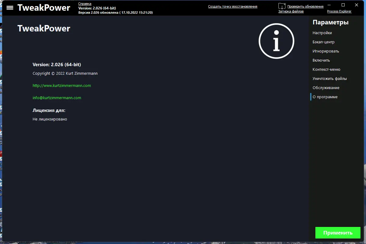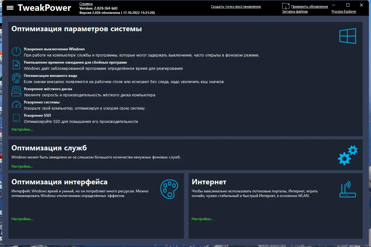 TweakPower — это универсальный инструмент для глубокой оптимизации и настройки операционной системы Windows, объединяющий в себе функции очистки, диагностики, повышения производительности и обеспечения безопасности. Программа предоставляет доступ к скрытым настройкам системы, позволяет устранять ошибки, управлять автозагрузкой, восстанавливать работоспособность ОС и освобождать ресурсы диска и памяти. Подходит как для обычных пользователей, так и для продвинутых, стремящихся выжать максимум из своего компьютера.