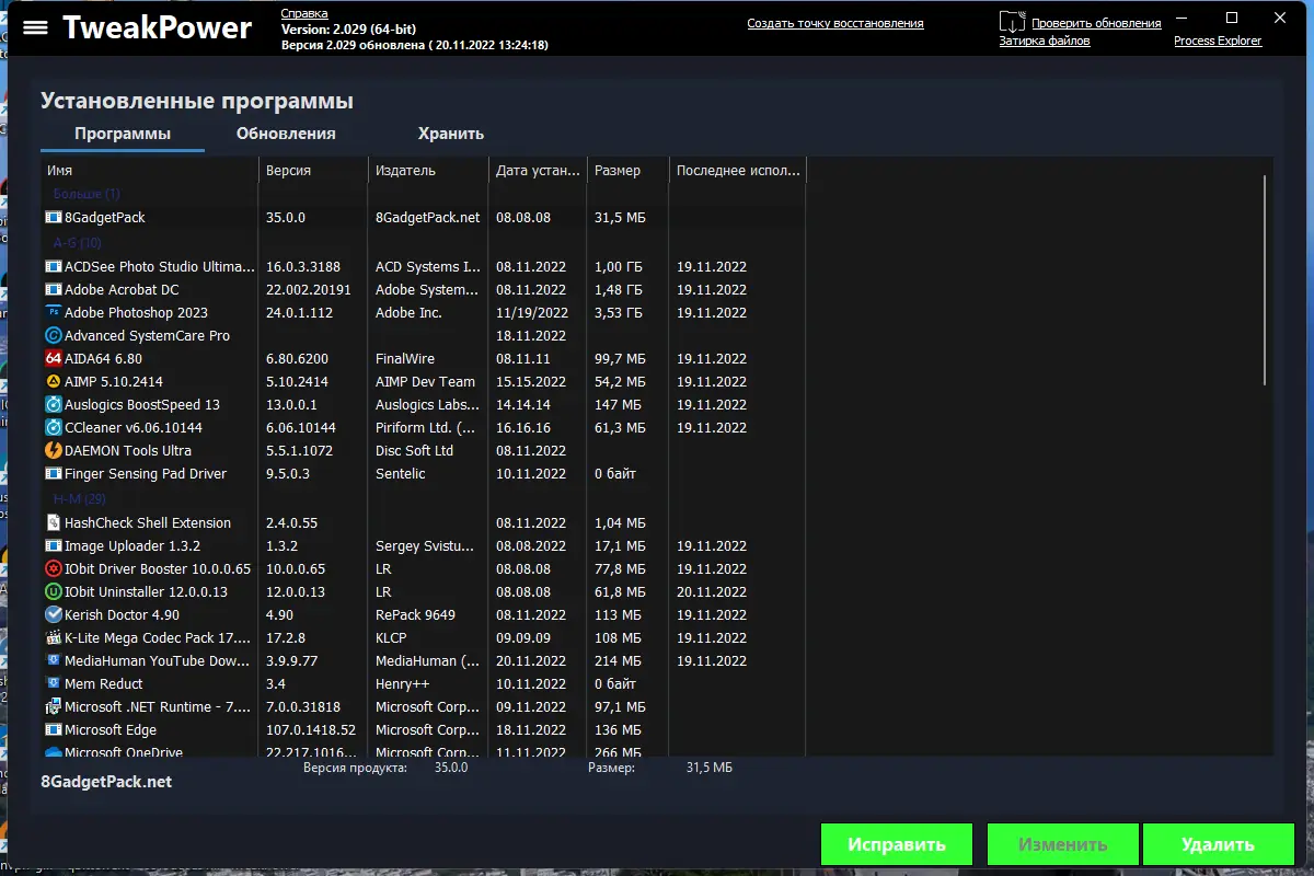 Программа сочетает в себе широкий функционал и стабильность работы, что делает её ценным инструментом для обслуживания ПК. TweakPower не перегружает систему и не требует постоянного присутствия в фоне, работая точечно при необходимости. При этом наличие портативной версии расширяет сценарии использования, позволяя запускать утилиту с флешки без установки.