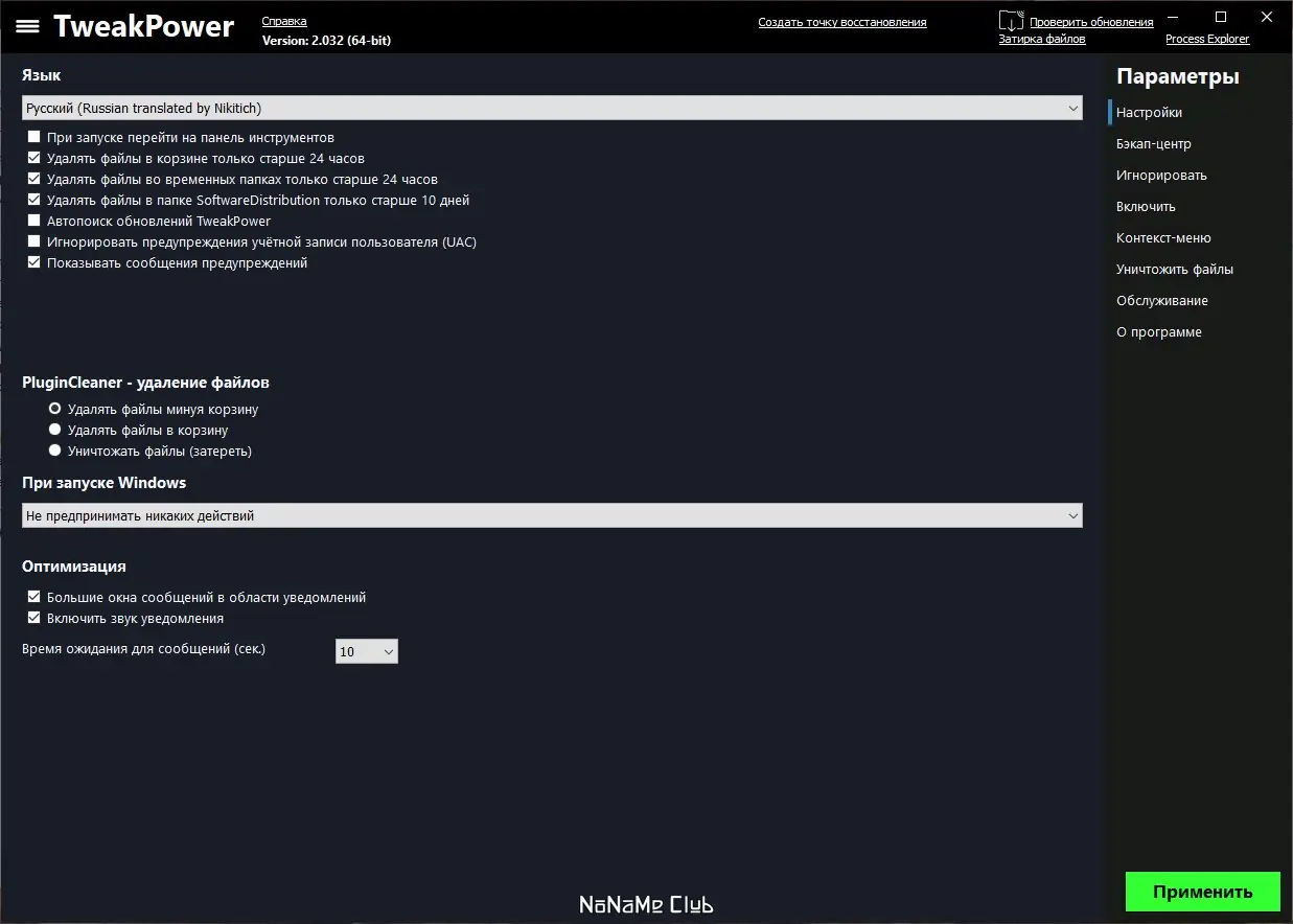 - Поддерживает создание точек восстановления и резервное копирование важных настроек.