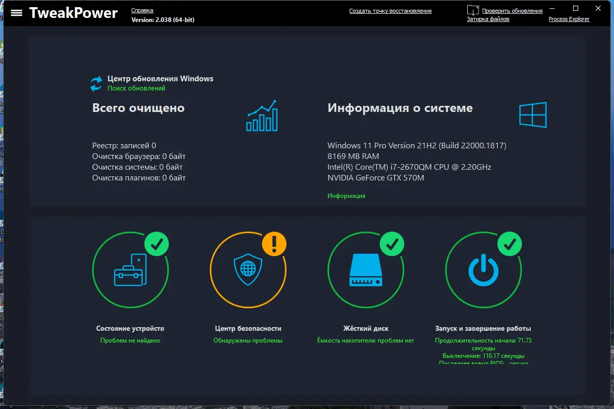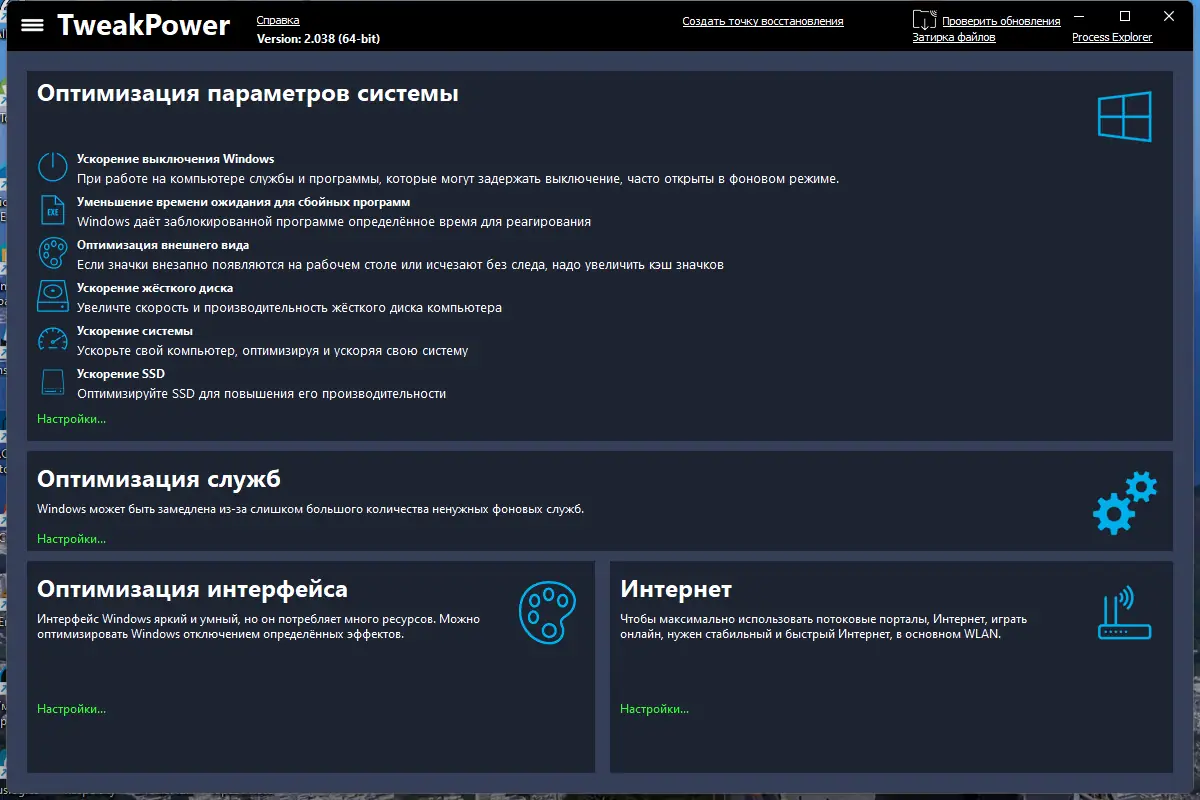 TweakPower — это комплексный инструмент для глубокой оптимизации и настройки операционной системы Windows, объединяющий в себе функции очистки, диагностики, управления системными процессами и повышения производительности. Программа подходит как для опытных пользователей, так и для новичков, стремящихся улучшить стабильность и скорость работы компьютера. С её помощью можно эффективно управлять автозагрузкой, оптимизировать реестр, настраивать параметры безопасности и конфиденциальности, а также восстанавливать систему при необходимости. Современный интерфейс и широкий функционал делают её универсальным решением для обслуживания ПК.