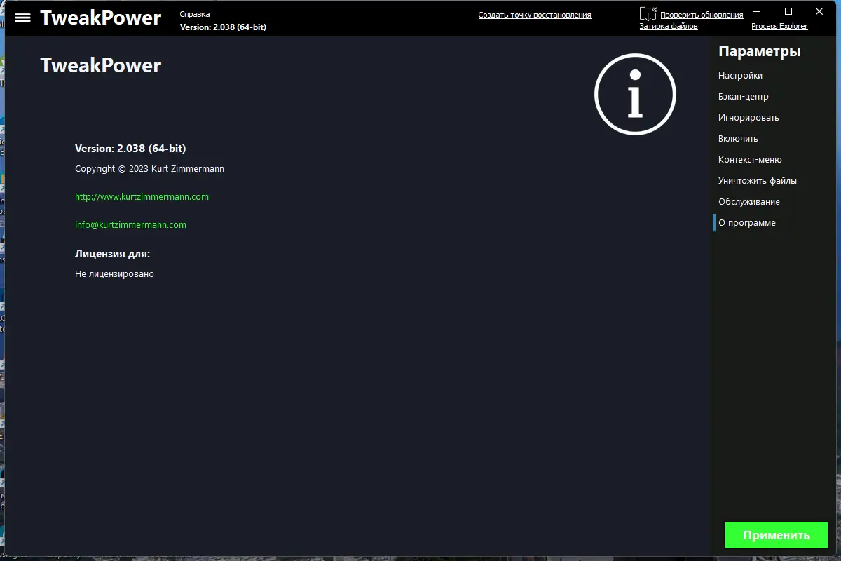Программа поддерживает создание точек восстановления, что позволяет безопасно вносить изменения в систему и при необходимости вернуть прежнее состояние.