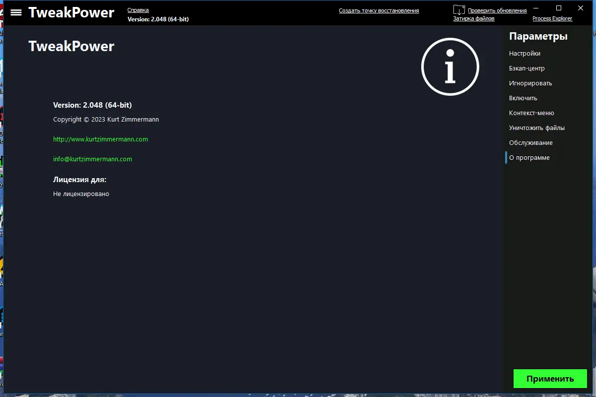 TweakPower — это многофункциональный твикер, предназначенный для тонкой настройки операционной системы. Программное обеспечение ориентировано на пользователей, стремящихся максимально эффективно использовать возможности своего ПК, устраняя лишние процессы, настраивая автозагрузку и улучшая общую отзывчивость системы. Интерфейс интуитивно понятен, а инструменты охватывают широкий спектр задач — от обслуживания реестра до управления фоновыми службами.