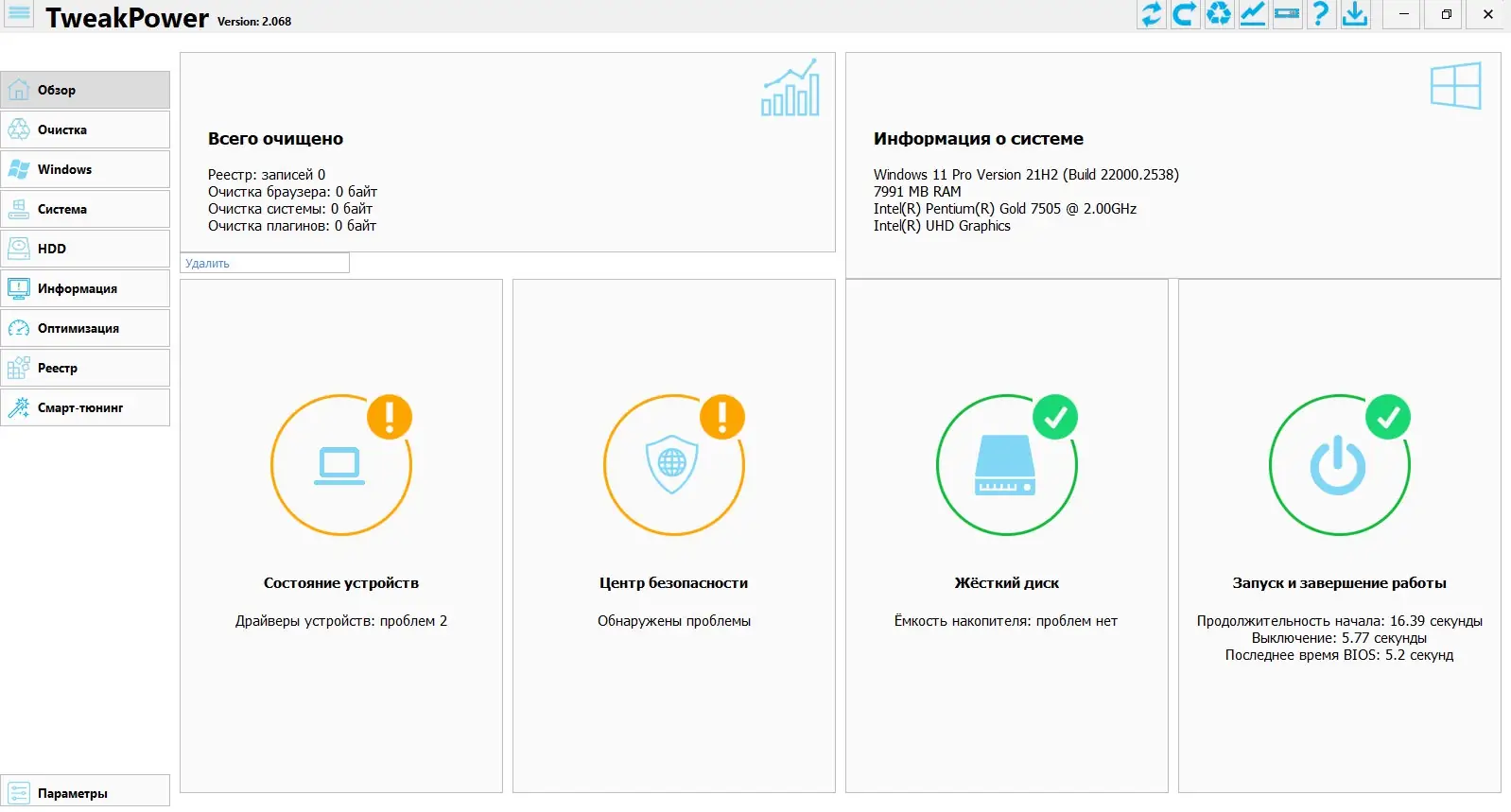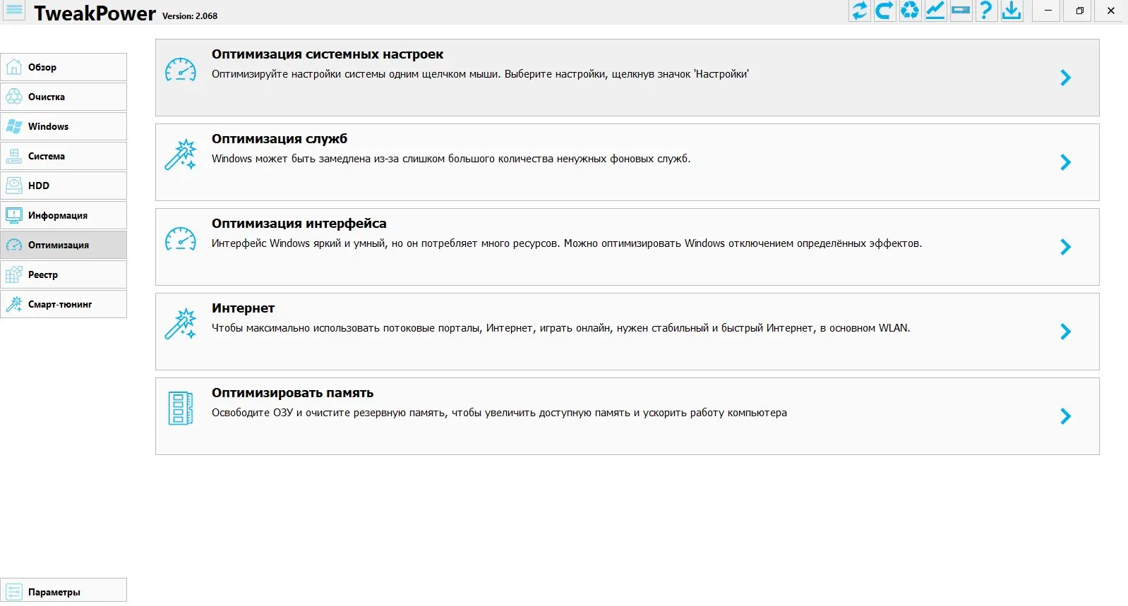TweakPower — это комплексный инструмент для тонкой настройки, оптимизации и обслуживания операционной системы Windows. Программа объединяет десятки функций в едином интерфейсе, позволяя ускорить работу компьютера, освободить место на диске, устранить системные ошибки и настроить параметры безопасности. Подходит как начинающим пользователям, так и продвинутым, стремящимся получить полный контроль над системой.