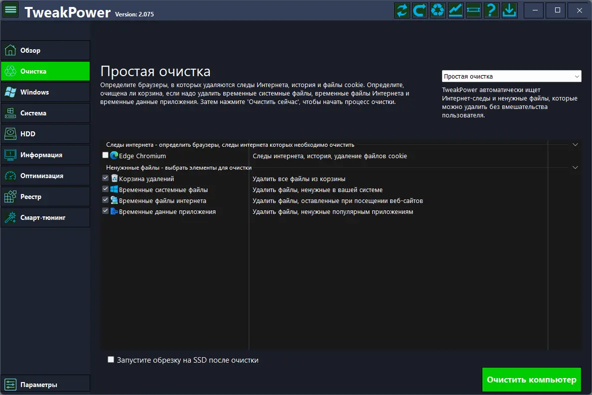 - Проведение полной очистки временных файлов, кеша браузеров и следов активности в интернете.