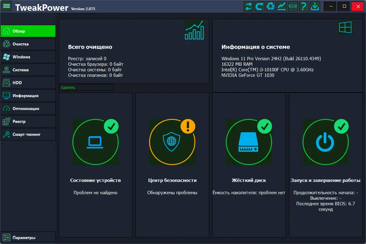 TweakPower — это комплексный инструмент для оптимизации и настройки операционной системы Windows, объединяющий множество функций в едином удобном интерфейсе. Программа позволяет проводить глубокую очистку системы, управлять автозагрузкой, настраивать параметры безопасности и производительности, а также восстанавливать стабильную работу компьютера после сбоев. С её помощью можно значительно ускорить работу устройства и освободить дисковое пространство от ненужных файлов и ошибок.