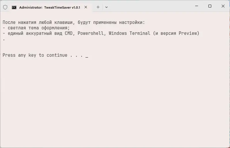 Данное решение представляет собой набор командных сценариев .cmd для быстрой и безопасной настройки Windows 11 или Windows 10 после чистой установки или сброса системы. Программа позволяет за минуту применить продуманные, полезные и проверенные настройки, избавляя от ручного поиска и изменения параметров в системных меню. Подходит как для новых, так и для давно используемых компьютеров.