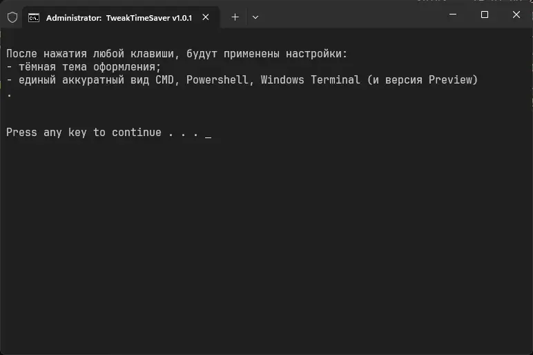TweakTimeSaver — это инструмент, состоящий из серии независимых .cmd-файлов, каждый из которых выполняет определённую задачу по оптимизации и персонализации операционной системы. Вместо монолитного приложения с графическим интерфейсом здесь использован подход модульности: каждый шаг — это отдельный скрипт с понятным названием, позволяющий точно контролировать, какие изменения вносятся. Такой формат исключает нежелательные побочные эффекты и делает процесс прозрачным.