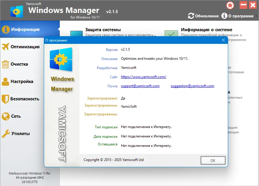 Manager — это универсальная утилита для оптимизации, настройки, очистки и восстановления систем Windows 10 и 11, объединяющая более сорока инструментов в одном интерфейсе. Программа помогает повысить производительность, устранить системные ошибки, персонализировать интерфейс и усилить защиту операционной системы.