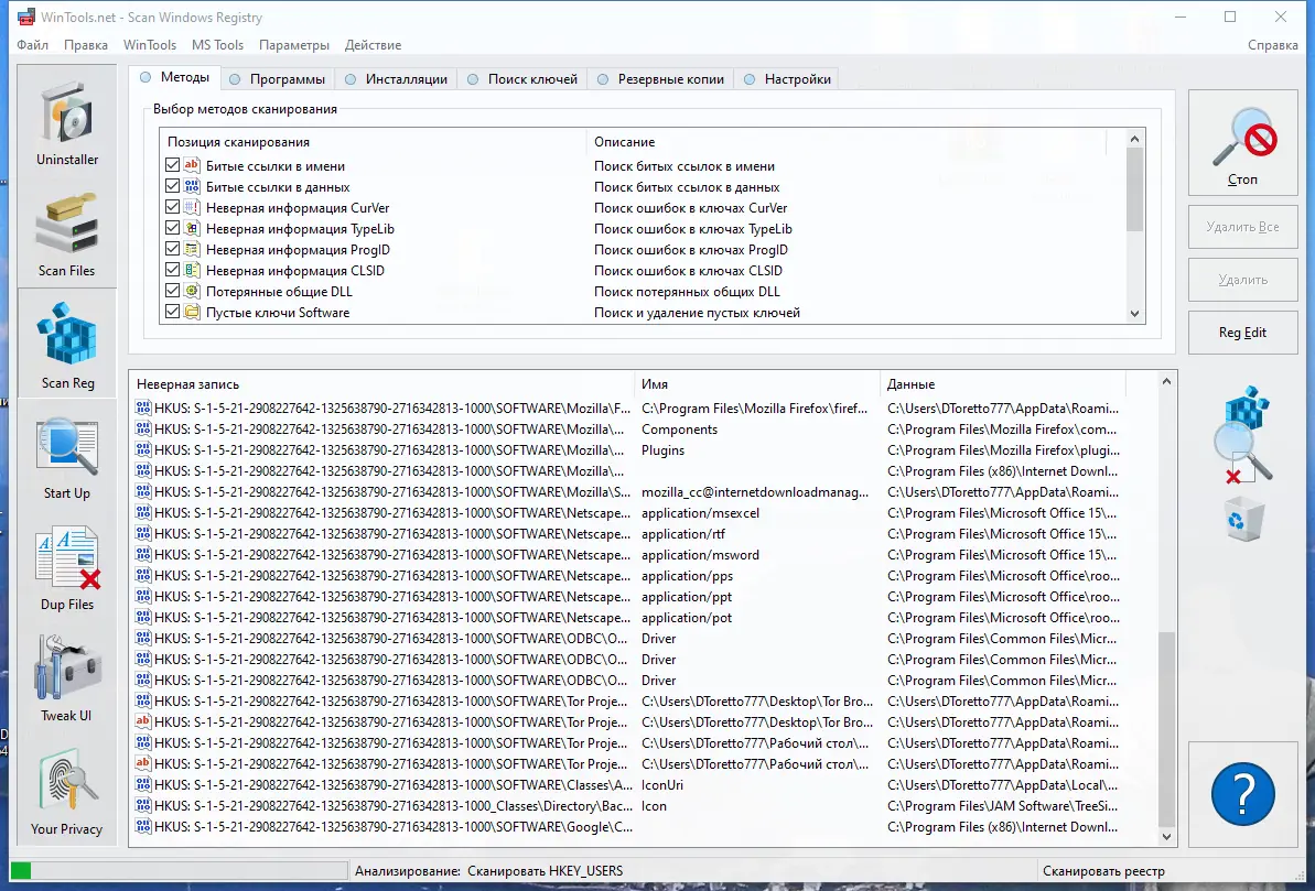 - Функция Scan Registry сканирует системный реестр на наличие устаревших, повреждённых или неработающих записей и корректирует их