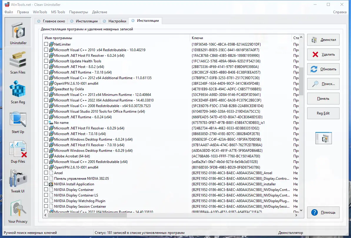 - Полный контроль над процессами деинсталляции и очистки системы от мусора