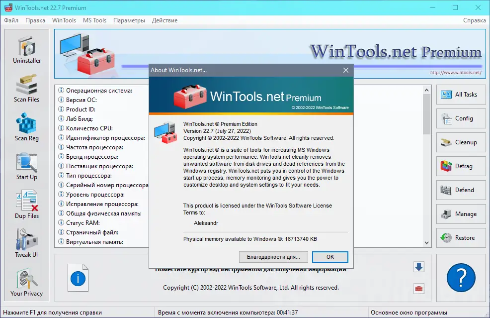 WinTools.net представляет собой набор модульных утилит, ориентированных на повышение стабильности и скорости работы операционной системы. Каждый компонент отвечает за определённую сферу оптимизации, что позволяет пользователю гибко управлять состоянием компьютера. Программа не перегружена интерфейсом и отличается высокой эффективностью при минимальном потреблении ресурсов. Она не требует постоянного запуска в фоне, действуя точечно по запросу.