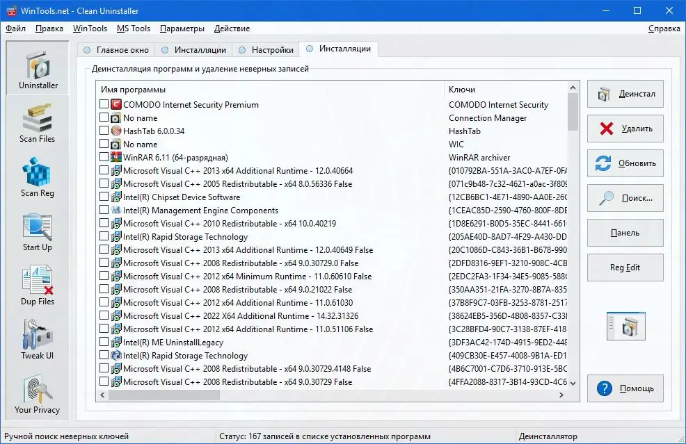 - Модуль Clean Uninstaller обеспечивает полное удаление программ с последующей очисткой остаточных файлов и записей реестра.