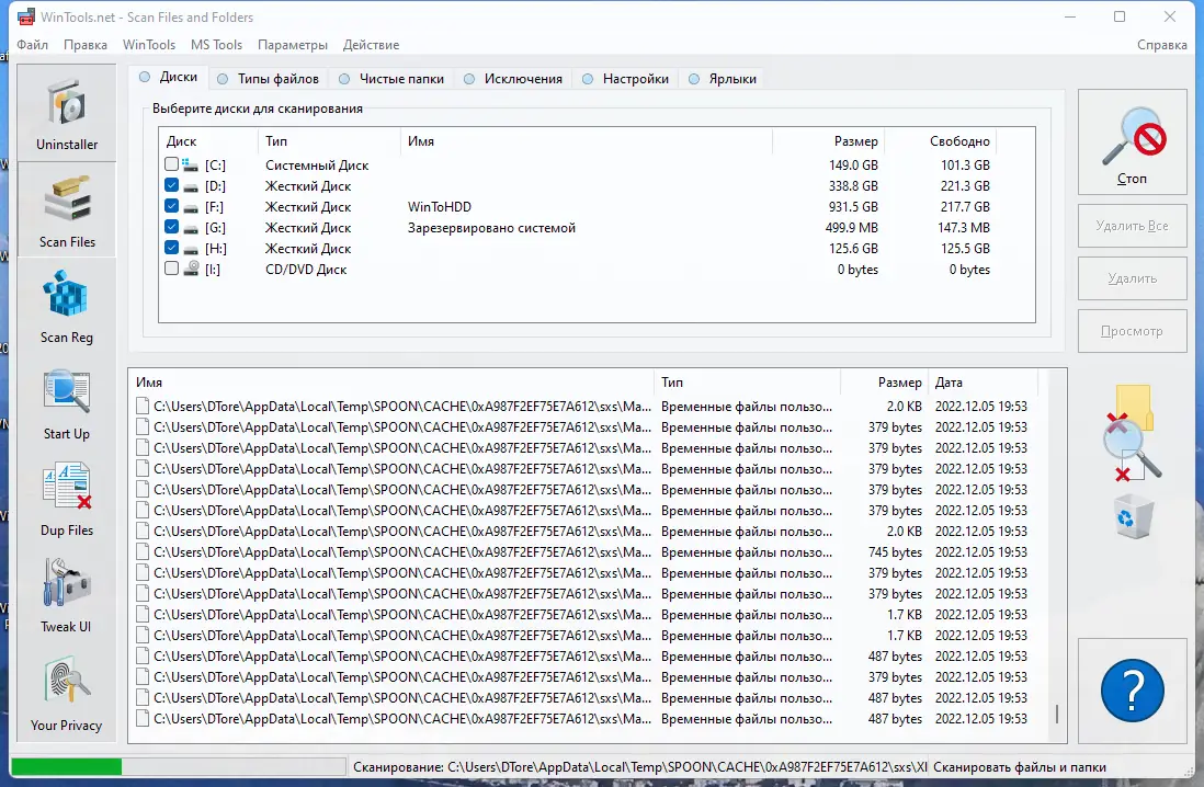 - Инструмент Scan Files сканирует жёсткий диск на наличие временных и ненужных файлов, накопленных в результате работы приложений и сбоев в системе.