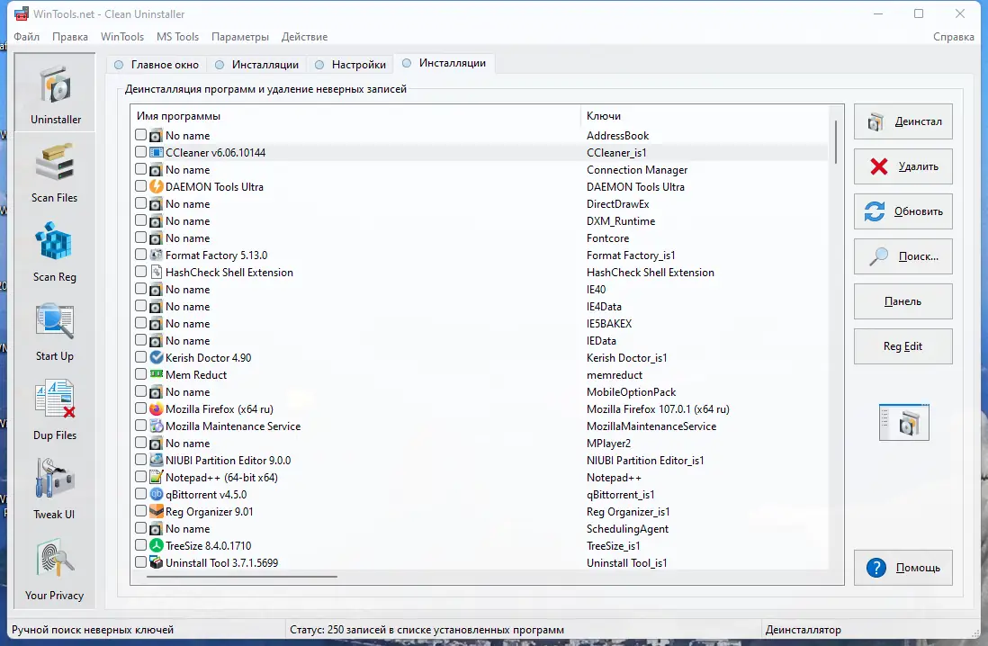 - Утилита Clean Uninstaller помогает полностью удалять программы, включая остаточные файлы и записи в реестре, а также отслеживает изменения при установке ПО.