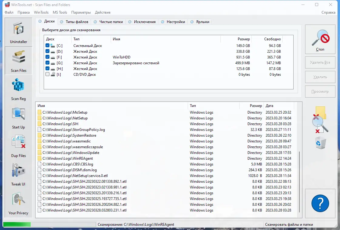 - Инструмент Scan Files находит временные, кэшированные и остаточные файлы, оставленные приложениями, и позволяет удалить их, освобождая дисковое пространство и ускоряя работу системы.