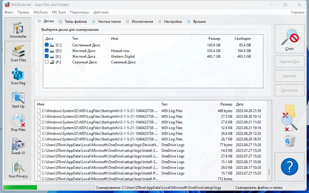 - Инструмент Scan Files сканирует жёсткий диск на наличие временных файлов, оставшихся после сбоев или некорректного завершения работы приложений, и предлагает их безопасное удаление.