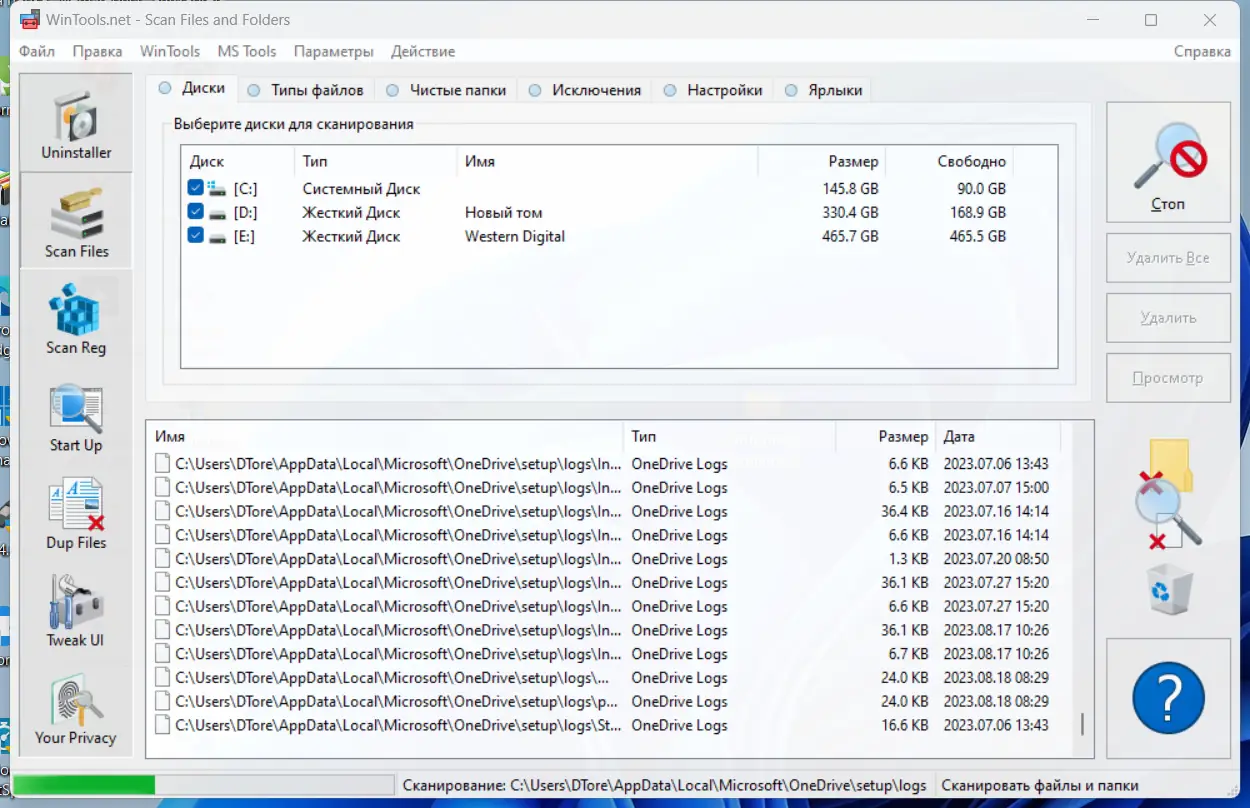 - Функция Scan Files сканирует систему на наличие временных и ненужных файлов, которые остаются после сбоев или некорректного завершения работы приложений.